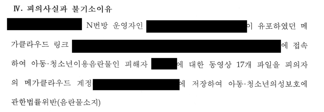 이 사건 피의사실의 요지는, 피의자가 엔번방 운영자 갓갓이 올린 메가클라우드 링크에 접속하여 피해자가 등장하는 성착취 동영상 17개를 다운로드받아 소지하였다는 내용이었습니다.