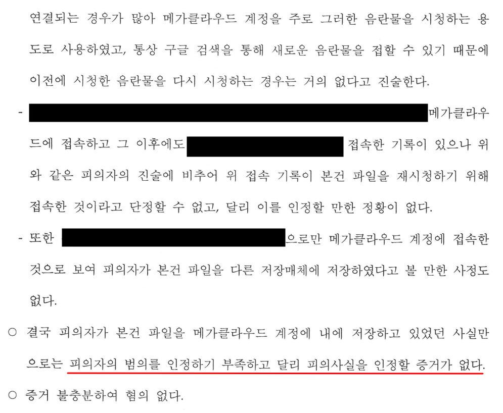 이에 대하여, 피의자는 '나는 미성년자가 나오는 동영상에 관심이 없다. 만약 아동청소년 성착취 동영상이라는 사실을 알았다면 절대로 다운로드하지 않았을 것이다.'라는 입장이었습니다.
