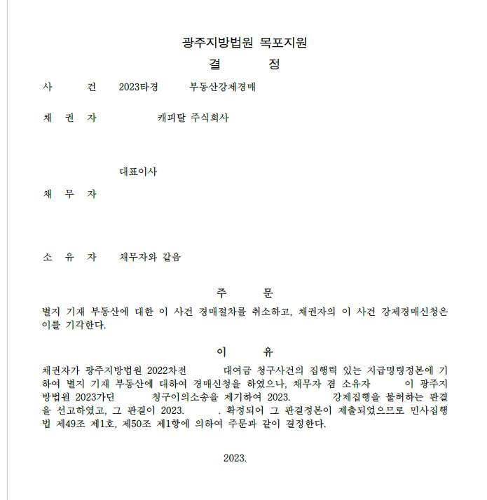 저는 즉각 금융기관을 상대로 청구이의의 소를 제기하여 명의도용/위조 사실을 주장 입증하여 승소 판결이 확정되었고 이를 경매법원에 제출하여 경매가 취소되었습니다.