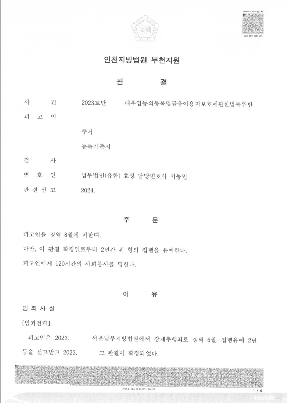 의뢰인은 강제추행죄로 집행유예가 확정되어 집행유예 기간 중인데 집행유예 기간 이전에 범한 미등록대부법 등이 발각되어 조사를 받게 되자 급하게 저를 찾아오셨습니다.