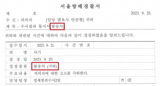 결과 = "불송치"로 사건 종결