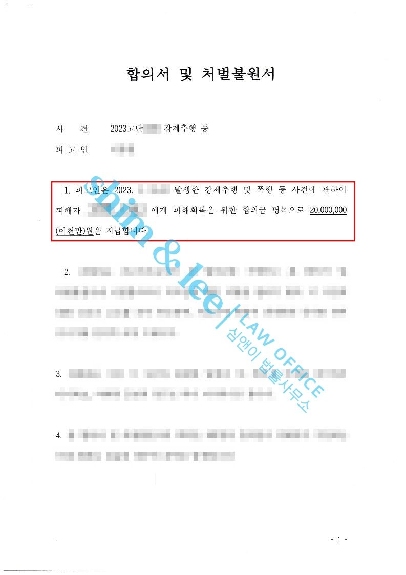 - 합의금 협상해 2,000만 원까지 끌어올려 선고 직전 합의 성사