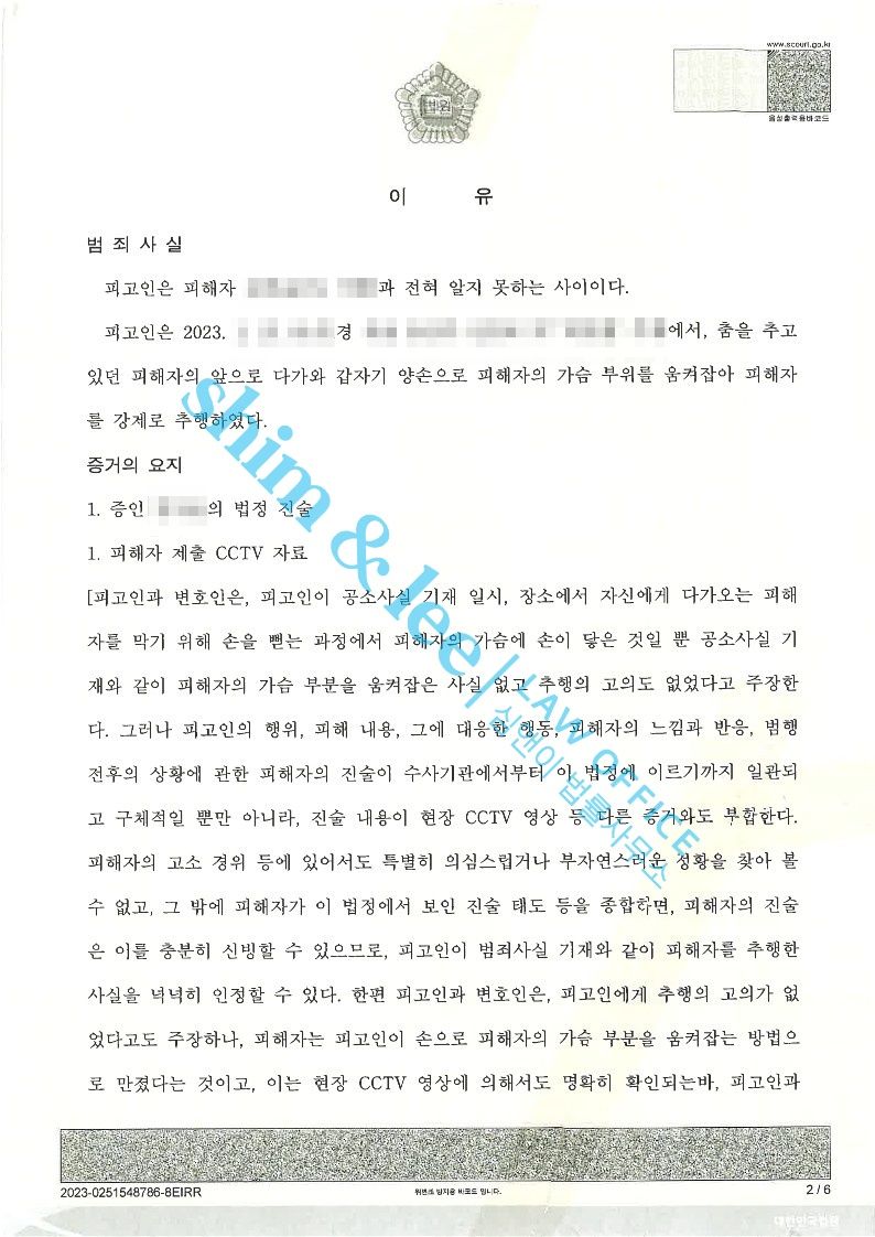 - 사건 정식 재판으로 진행되자 가해자는 공판에서 ‘밀집 장소에 있어 불가피한 접촉이었다’고 억지 주장