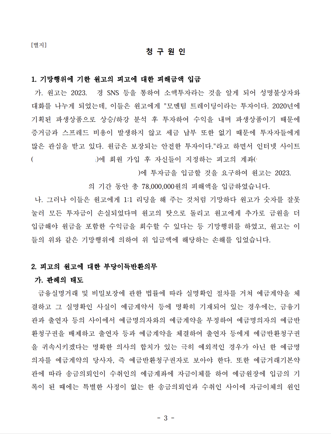이 사건에서도 의뢰인은 투자사기를 당하여 피고 법인에게 피해액을 입금하였고 이를 돌려받기 위해 저를 찾아오셨습니다.