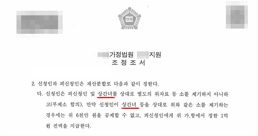 2)부정을 저지른 상간녀는 중요한 법원 문서에 영원히 상간녀라 남게 되었습니다.