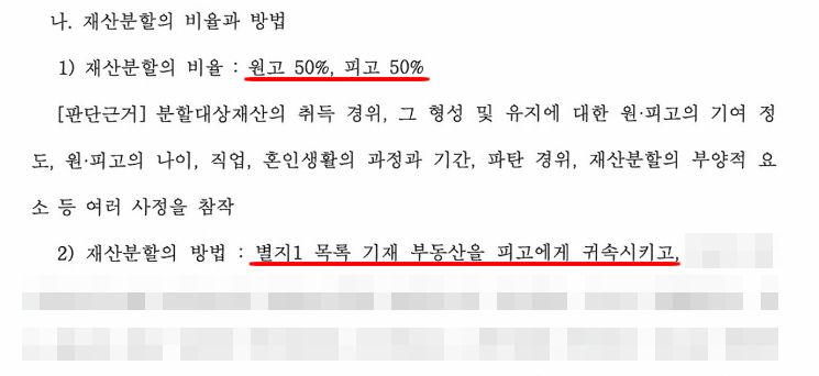 사례에서는 의사 남편은 자신의 소득이 높고 부인(의뢰인)은 전업주부라는 이유로 7:3, 의뢰인은 5:5의 재산분할을 원했습니다.