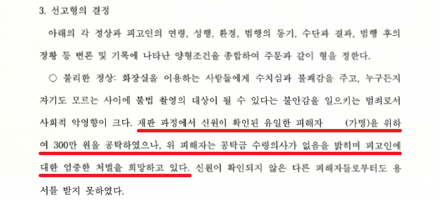 얼마 뒤, 화장실 침입 부분은 혐의에서 제외되어 불법촬영 부분에 대해서만 검찰로 송치된 뒤 구공판되었고, 이에 저는,