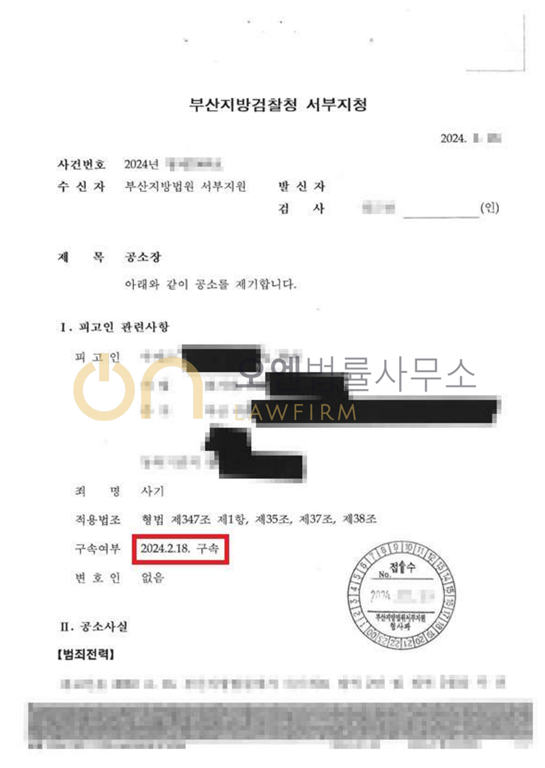 실제 수사기관은 다수의 피해자가 있음을 확인하였고, 변호인의 주장을 받아들여 피고소인을 사기 혐의로 구속 기소하였습니다.