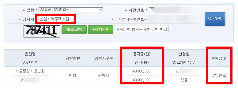 이후 최동욱 변호사는 승소결과를 토대로 신탁사를 상대로 강제집행을 실시하였고, 그 결과 의뢰인들은 아래와 같이 합계 약 6천만원의 기납부금을 실제로 회수할 수 있게 되었습니다.