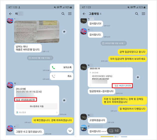 이후 최동욱 변호사는 구산역 에듀시티 지역주택조합을 상대로 강제집행을 실시하였고, 그 결과 아래와 같이 의뢰인들은 최근 기지급금 전액 및 그에 대한 지연이자를 실제로 회수하게 되었습니다.