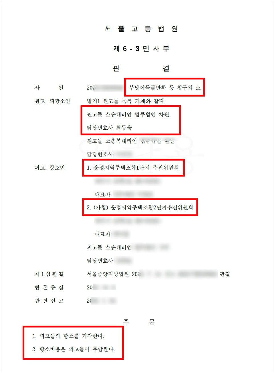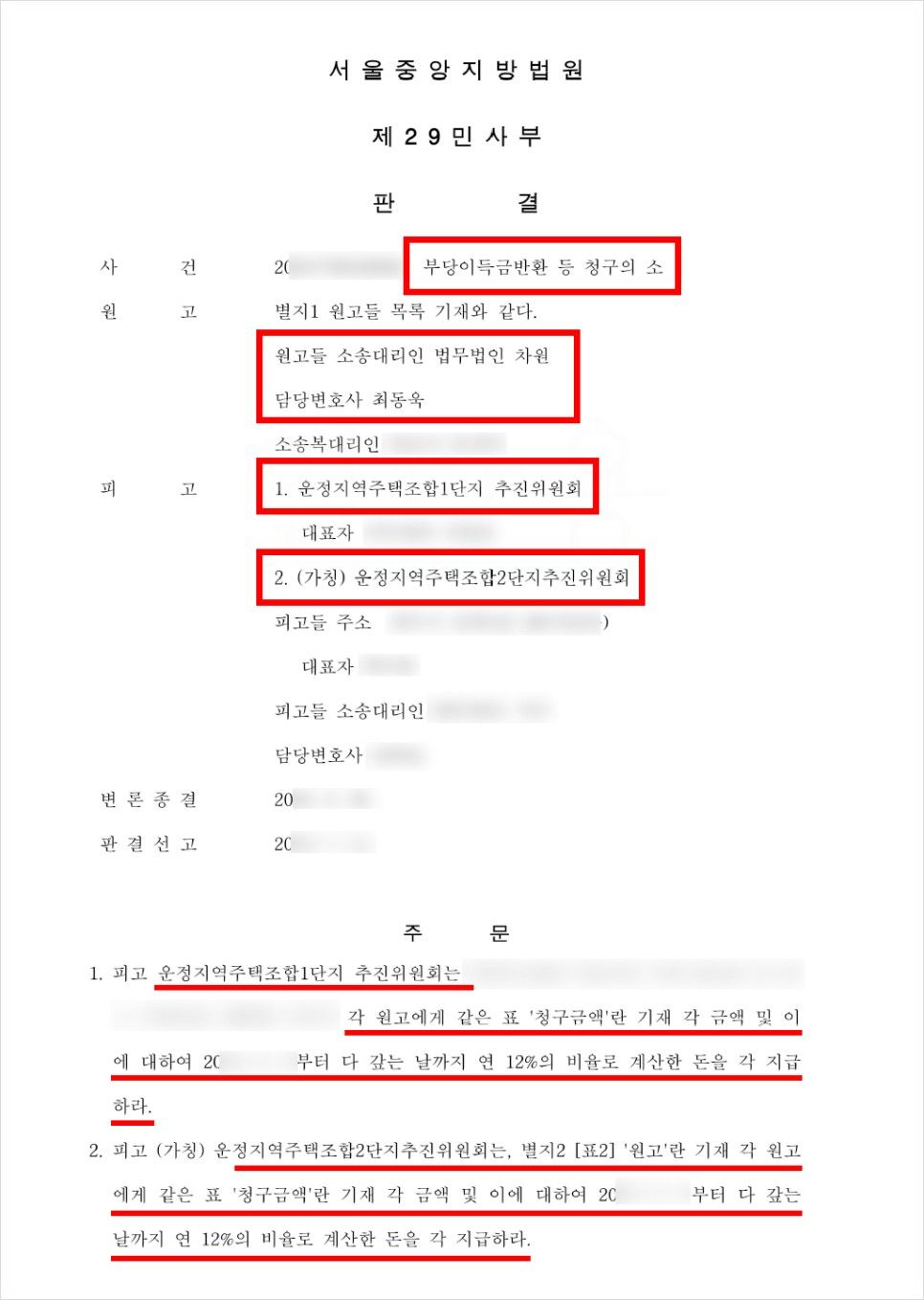 [부당이득금반환 소송 제기 및 1심과 2심 승소판결]