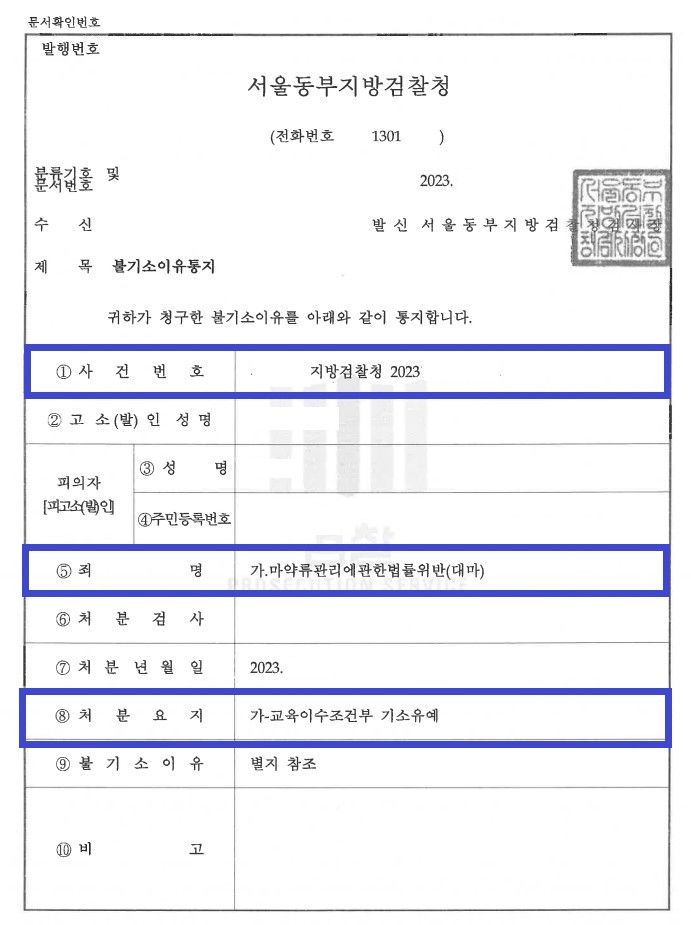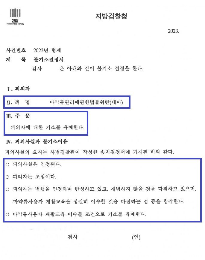 4. '기소유예' 처분 (강남마약형사전문변호사, 호기심에 대마를 여러 차례 매수·투약하였으나, '기소유예' 받은 사건)