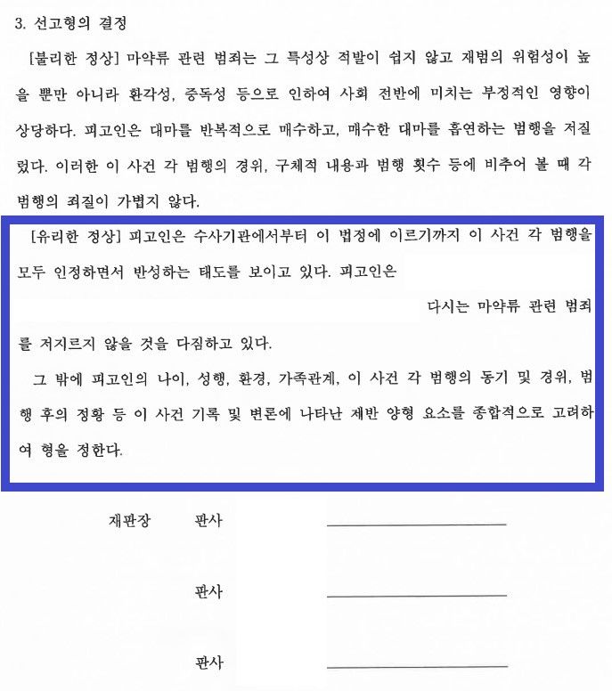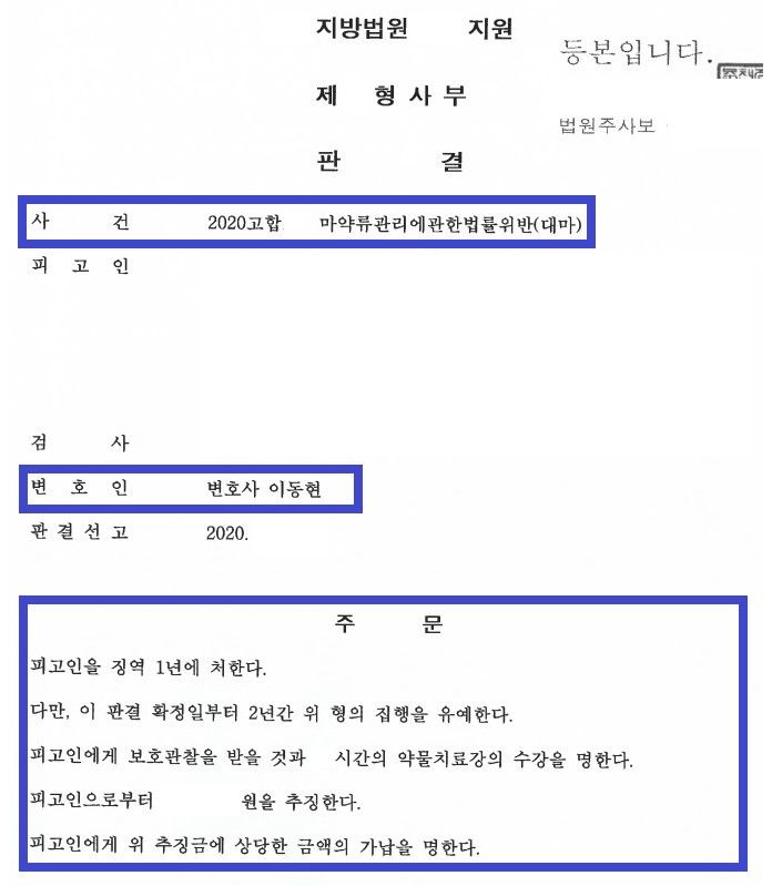 4. '집행유예' 판결 선고 (강남마약형사전문변호사, 여러 차례 대마를 매수하고 흡연하였으나 결국 '집행유예'를 받은 사례)
