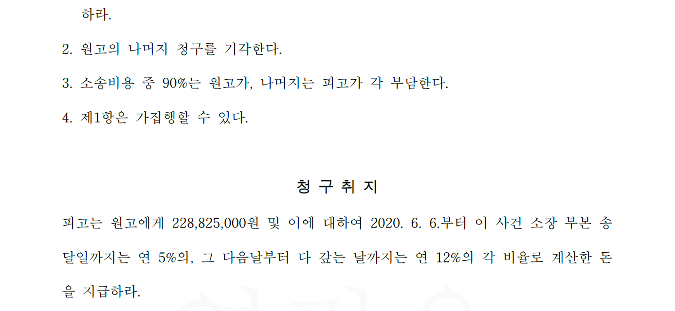 원고의 2.3억 원에 해당하는 손해배상 청구에 대하여 10%에도 미치지 않는 금액인 2천만 원으로 방어할 수 있었습니다.