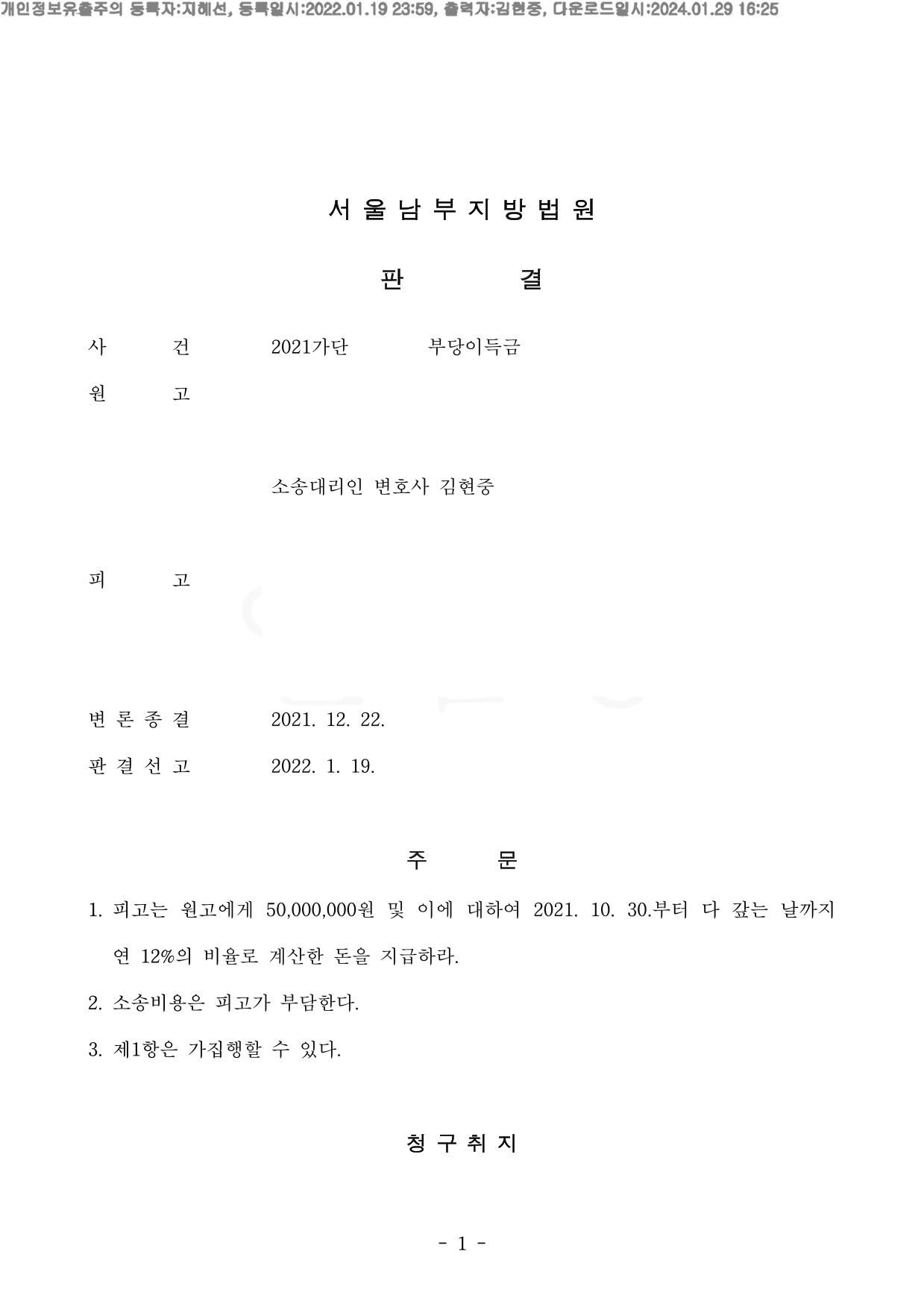 ****판결문을 보시면 아시겠지만 변호인으로서 제 이름만 들어가 있는 것을 확인하실 수 있습니다. 제가 온전히 혼자서 이끌어 낸 사례만을 저의 해결사례로 올리는 것이니 참고 바라며, 고용 변호사가 처리한 사건에서 제 이름만 들어간 사례라던 가 다른 변호사들과 함께 처리한 사건에서 제 이름이 들어갔다는 이유로 자신의 독자적인 해결사례인 것처럼 올리지 않습니다. 또한 착오가 없는 이상, 기존에 올렸던 해결사례를 일정 기간이 지난 후에 새로운 해결사례인 것처럼 재차 업로드 하지 않습니다. ****