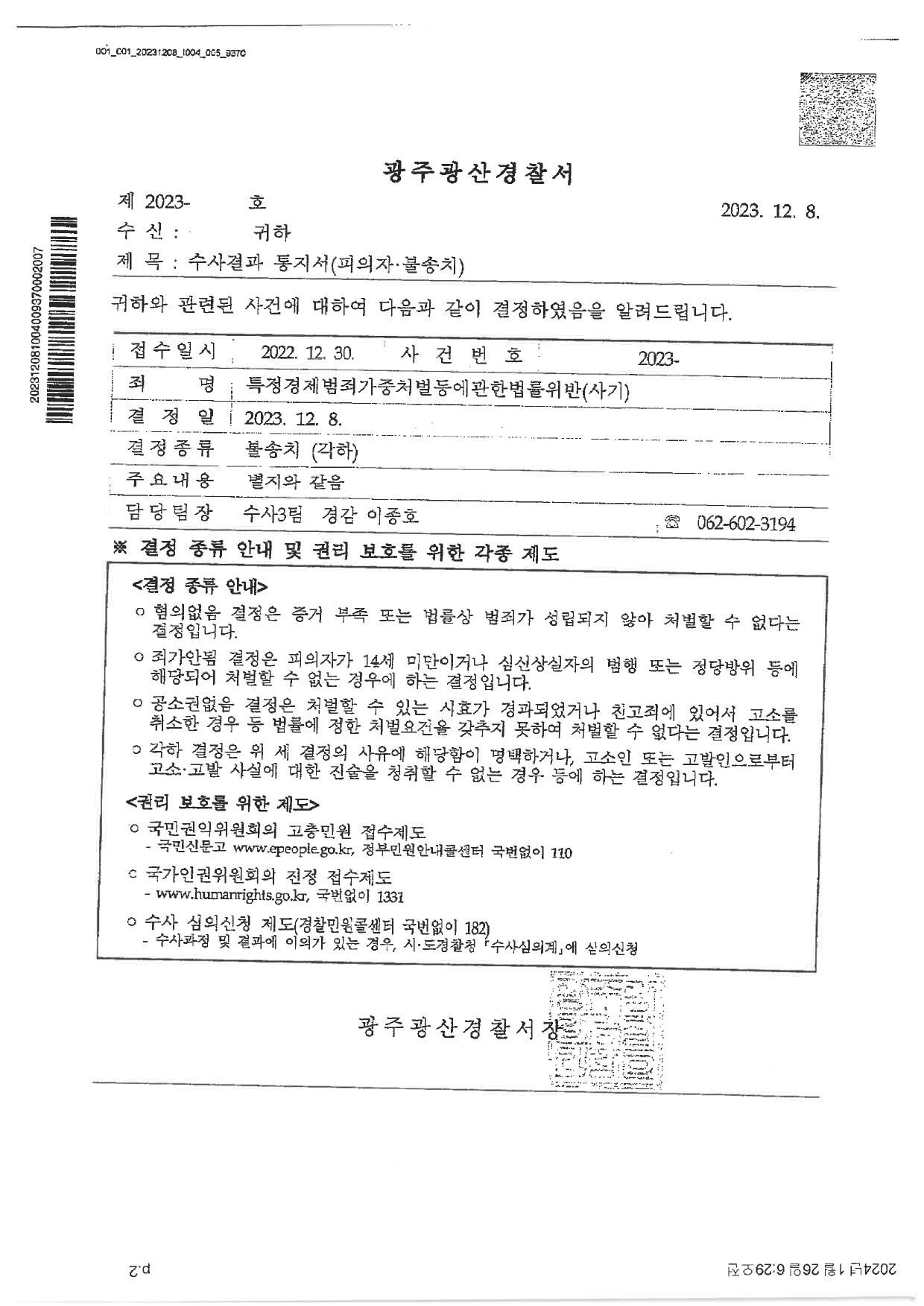 결국 피의자는 간단하게 불송치로 사건을 잘 마무리할 수 있었습니다.
