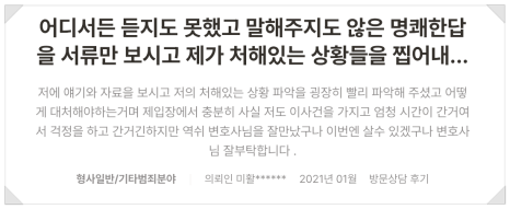 이런 분들은 저희가 아니어도 좋으니, 실력 있는 변호사를 찾아가 상담을 받아보시길 바랍니다.