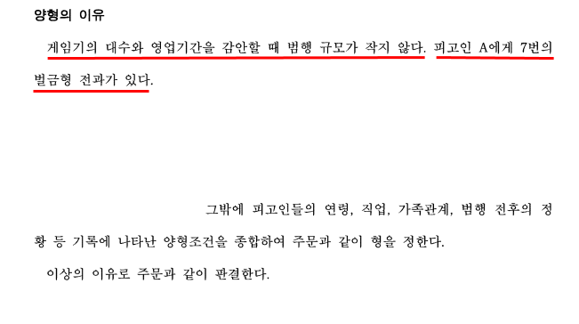 - A는 업소의 실질적인 관리 운영자로서 이 사건 범행에서 차지하는 비중이 높았고, 실제 게임기 대수와 영업기간을 감안할 때 범행 규모가 작지 않았습니다.