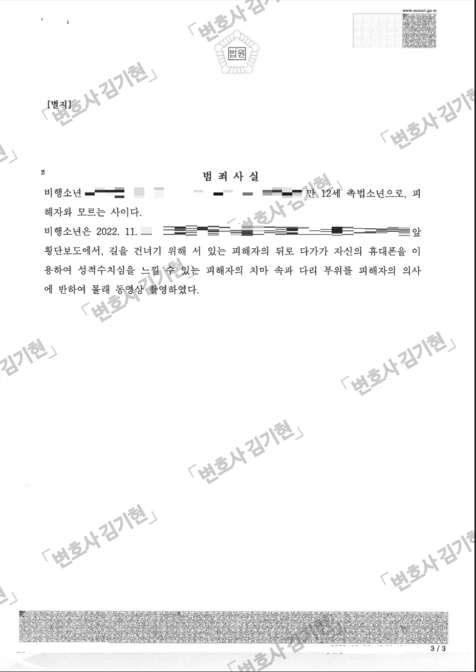 만 12세 촉법소년의 카메라등이용촬영죄 사건.