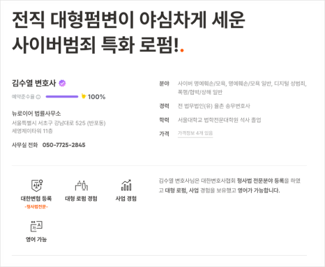 사이버 범죄 특화 로펌 뉴로이어입니다.