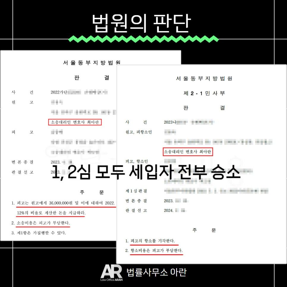 법원의 판단 : 1, 2심 모두 의뢰인(세입자) 전부 승소