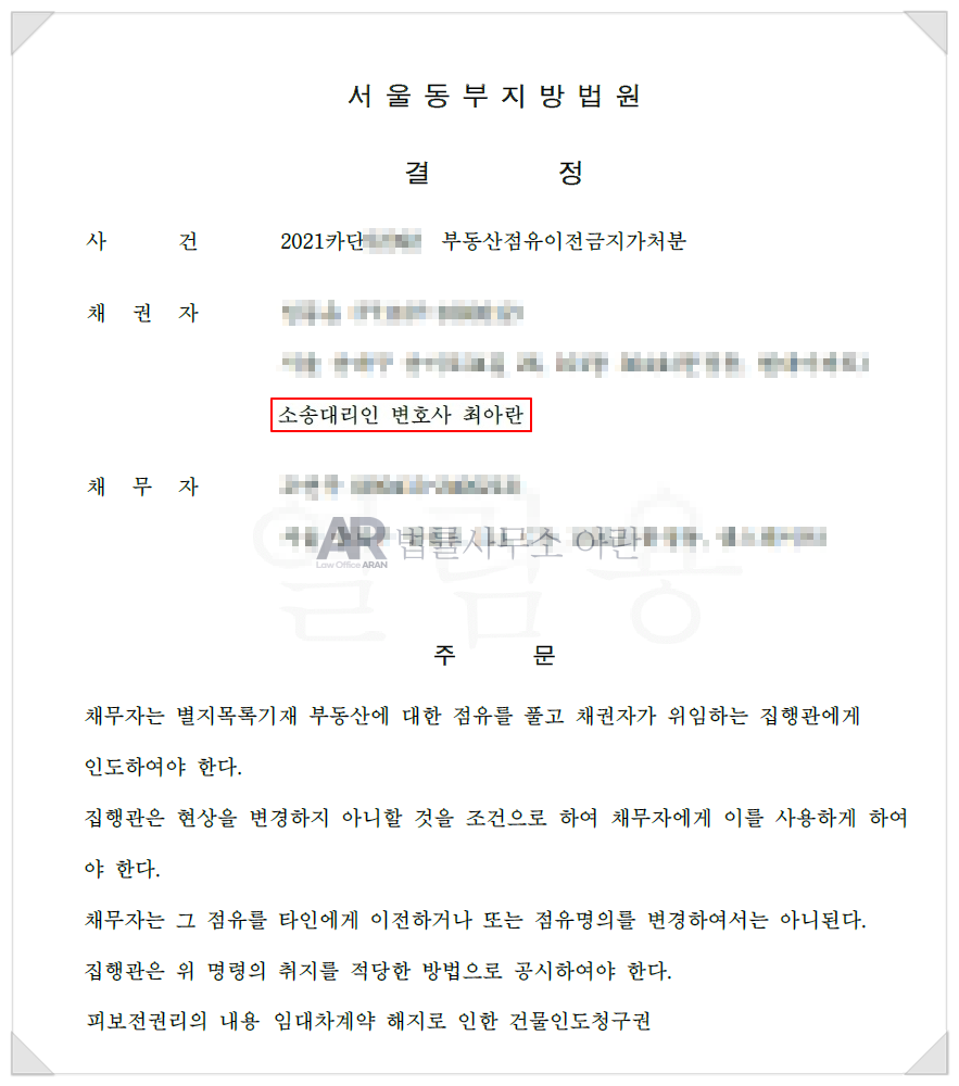 담보제공까지 완료되면 법원은 점유이전금지가처분 결정을 내립니다.