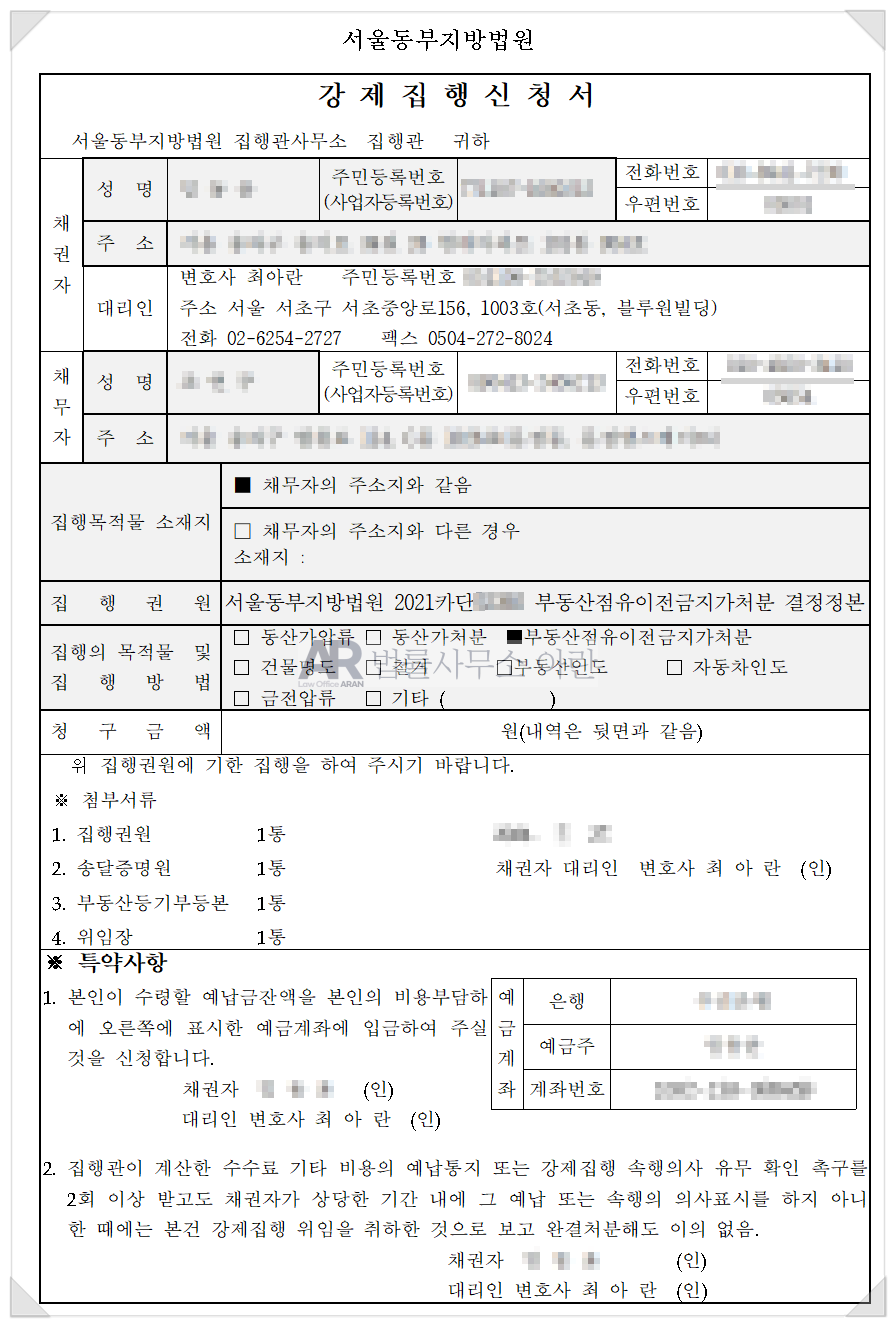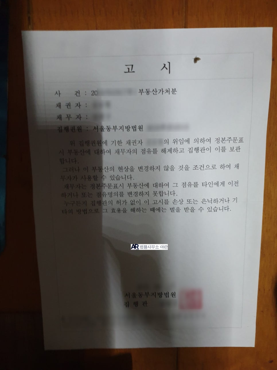 아래는 실제 가처분 현장에서 촬영된 사진입니다(현장에서 급히 촬영된 사진이라 초점이 흐린 점, 양해 부탁드립니다).