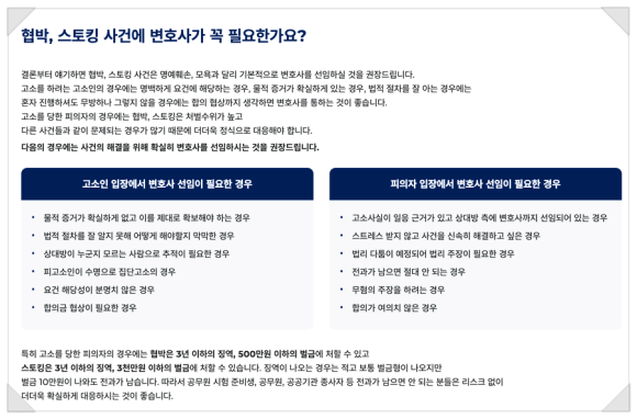 실제로 상담을 하다 보면 의뢰인분들이 '협박이 시작된 그때 강경하게 대응할 걸 그랬어요..'라며 후회하시는 경우도 많습니다.