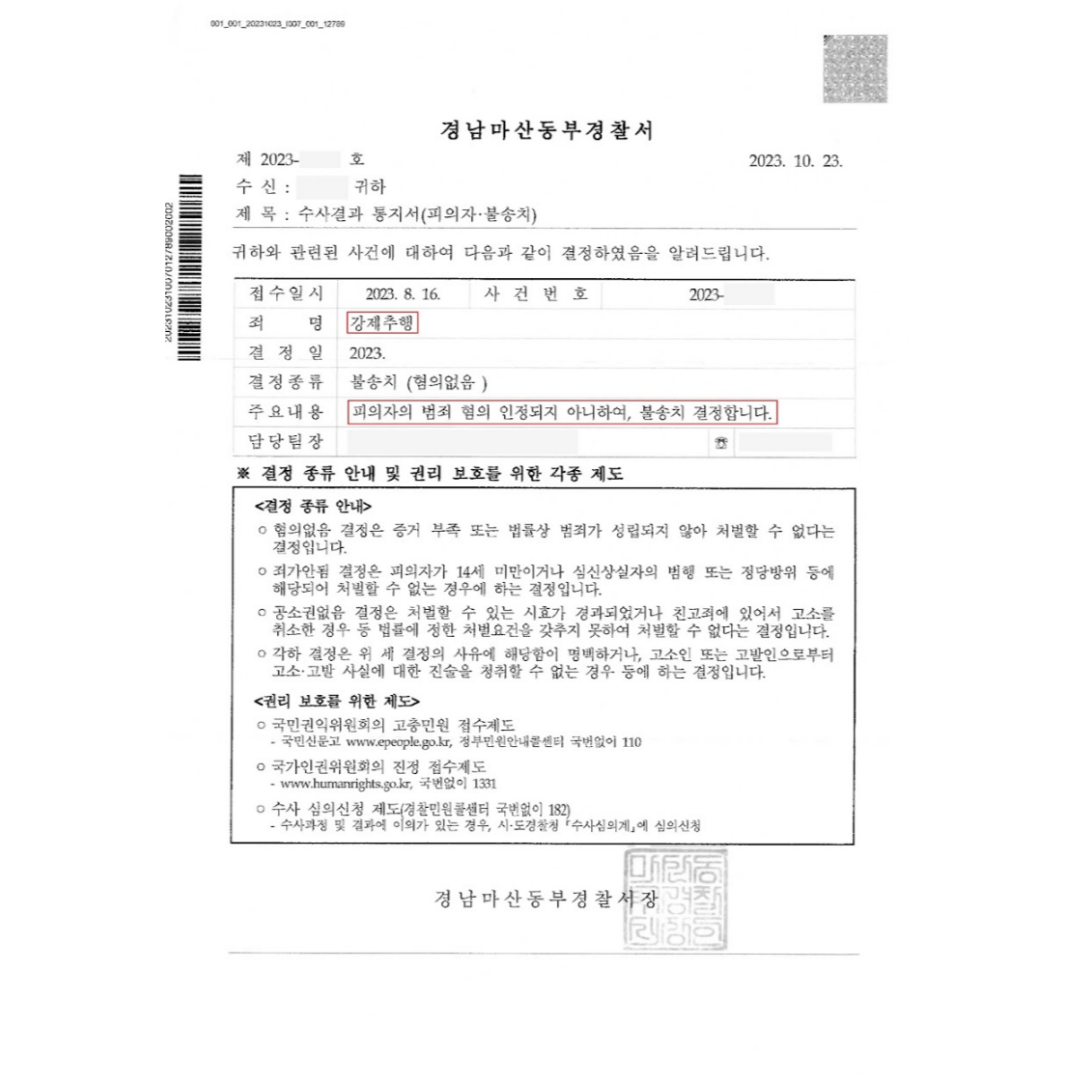 ![[강제추행] 불송치 - 경남마산동부경찰서](/_next/image?url=https%3A%2F%2Fd2ai3ajp99ywjy.cloudfront.net%2Fassets%2Fimages%2Fpost%2Fcase_title.jpg&w=3840&q=75)
