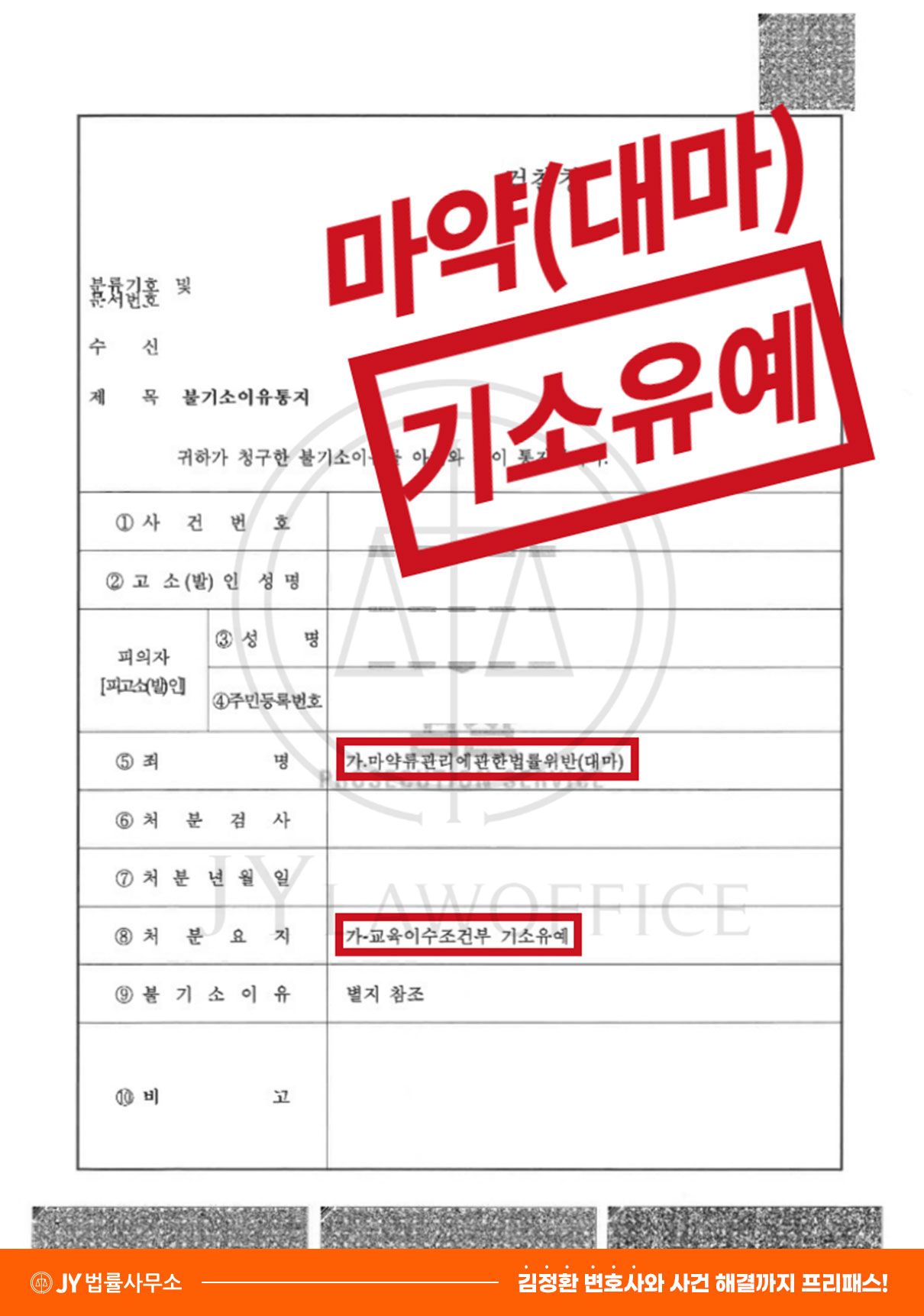 이와 같은 변호인의 노력에 따라, 의뢰인은 기소유예 처분을 받고 사건을 무사히 종결시킬 수 있었습니다.