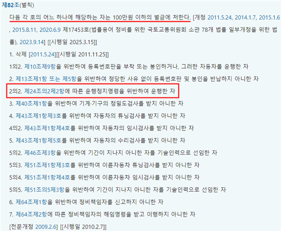 그리고 운행정지명령을 위반하여 자동차를 운행한 사람은 100만 원 이하의 벌금에 처해지게 됩니다.