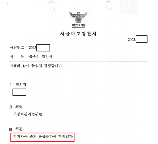이 사건은 증거불충분으로 불송치 결정이 내려졌습니다.