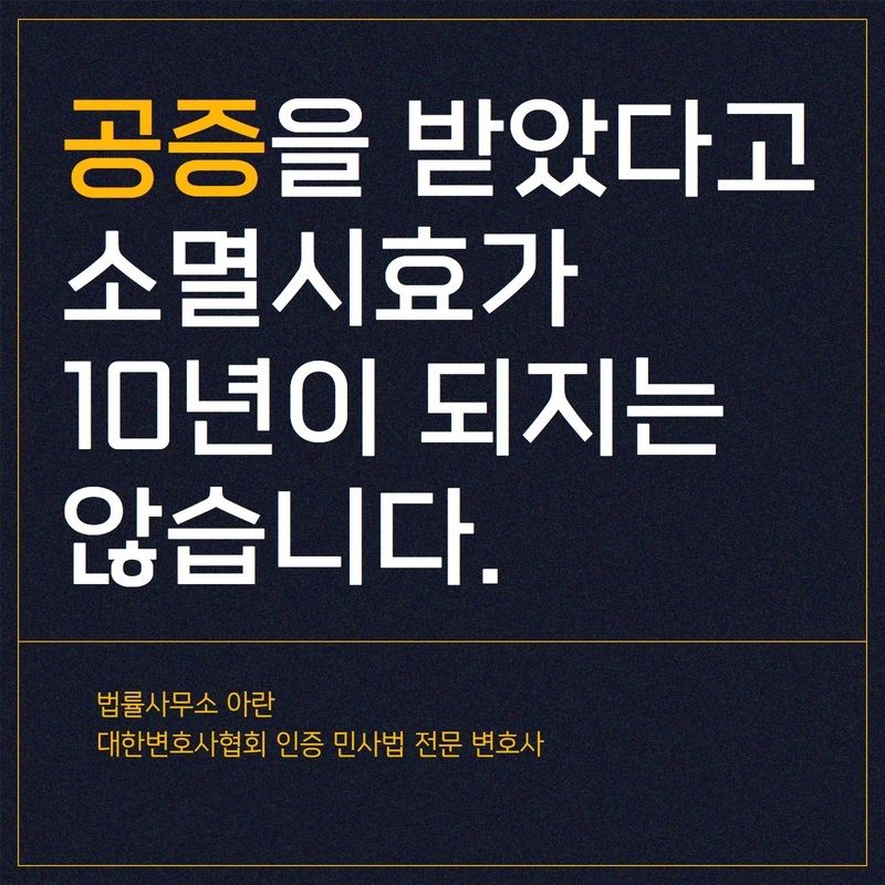 결론부터 말씀드리자면, 공증을 받았다고 소멸시효가 10년이 되지는 않습니다.
