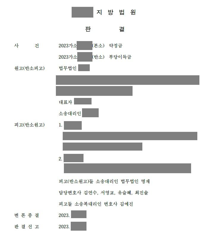 법원은 원고가 지급받은 착수금에서 해지될 때까지 소요한 위임사무의 처리 비용은 200만원으로 봄이 상당하다며 이를 제외한 나머지 착수금은 피고(반소원고)에게 반환하라는 판결을 선고하였습니다. 이는 우리의 반소 청구를 법원이 대부분 인정해 준 것으로, 다행히 의뢰인은 변호사의 도움을 받지 못하고 착수금을 지급할 위기에서 벗어날 수 있었습니다.