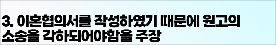 3. 이혼협의서를 작성하였기 때문에 원고의 소송을 각하되어야함을 주장