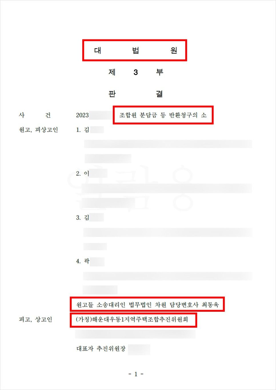 이러한 상황을 반영하듯 전포1 지역주택조합에서는 조합원들과 조합추진위간의 갈등으로 인해 조합원들이 조합추진위를 고발하기도 하는 등 장기간 불투명하게 진행되어온 사업으로 인해 많은 문제점을 드러내고 있습니다. 따라서 더이상 지체하지 말고 조합의 재산이 모두 소진되기 전에 하루라도 빨리 조합원 탈퇴 및 분담금 반환을 위한 소송절차를 알아보는 것이 더 유리할 것이라는게 최동욱 변호사의 조심스런 의견입니다.