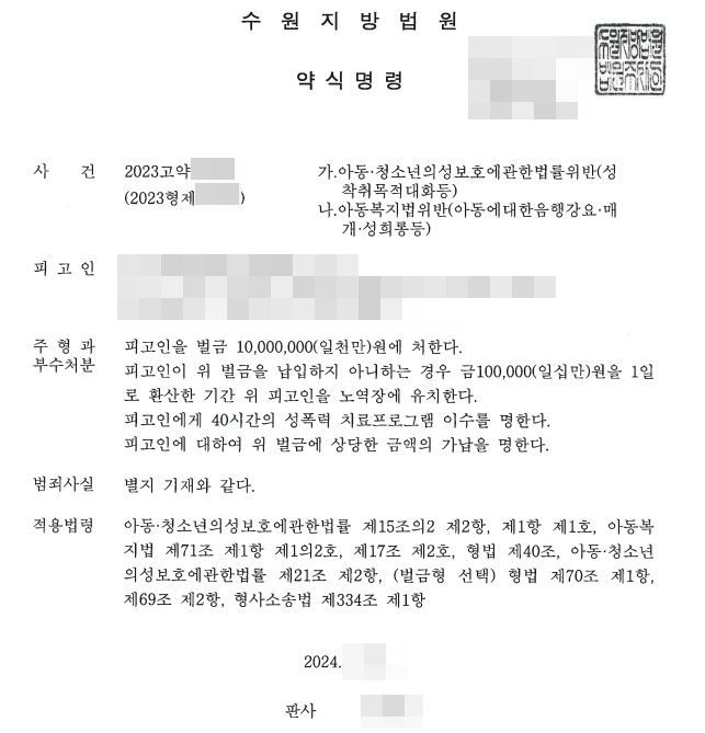 위 아동청소년의 성보호에 관한 법률 제15조의2에 따르면 아동청소년에 대하여 성착취를 목적으로 하는 대화에 지속적이고 반복적으로 참여시키는 행위는 3년 이하의 징역 또는 3천만원 이하의 벌금에 처하도록 되어 있고, 16세 미만인 사람에 대하여 성인인 사람이 위와 같은 행위를 하는 경우에도 동일한 형으로 처벌하도록 되어 있으므로,