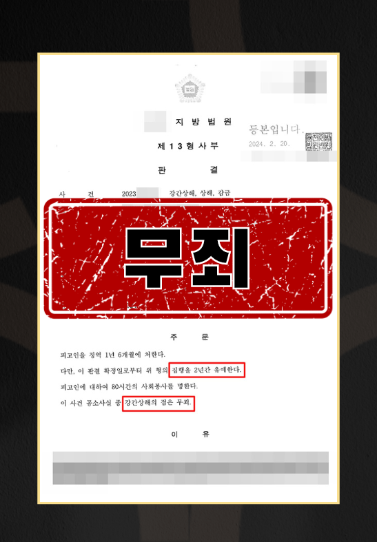 그 결과 재판부에서는 변호인이 주장한 사정들을 판결 이유에 반영하여 의뢰인에게 무죄를 선고하여 평온한 일상으로 돌아갈 수 있었습니다.