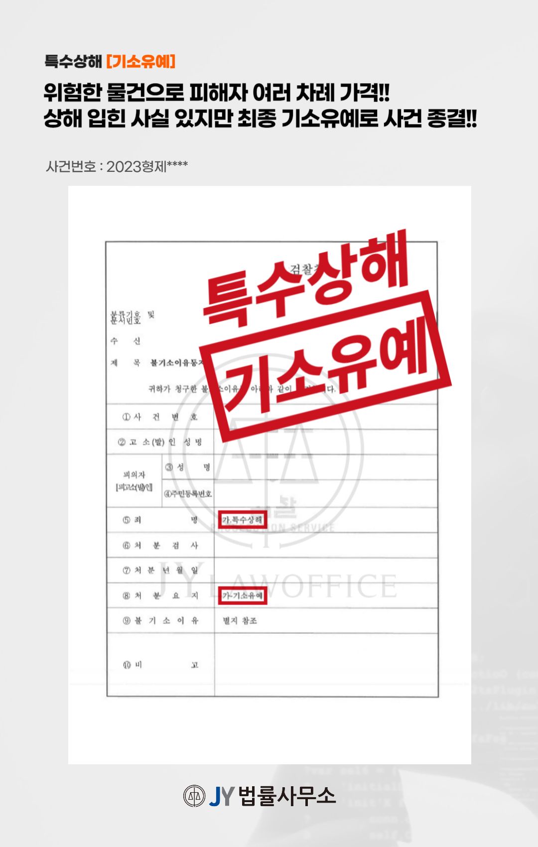 이와 같은 변호인의 조력에 따라, 의뢰인은 '기소유예'의 처분을 받고 사건을 마무리할 수 있었습니다.