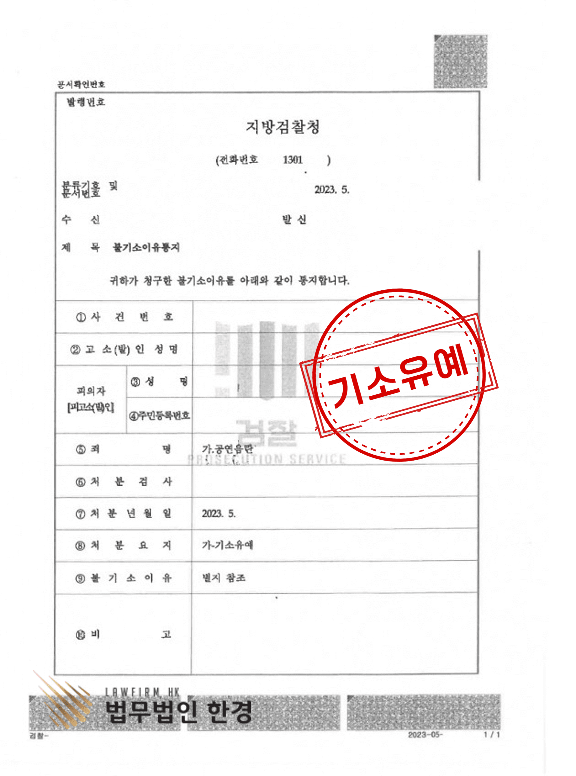 의뢰인 A씨는 입건 된 후 도움을 받고자 법무법인 한경을 찾아 대처 방안 등을 상담 받게 되었고, 의뢰인은 취업준비 등의 상황으로 기소유예 처분을 원하셨습니다. 법무법인 한경은 의뢰인에게 기소유예 가능성을 설명하였고, 의뢰인은 설명을 들은 뒤 법무법인 한경에 사건 의뢰를 하였습니다.