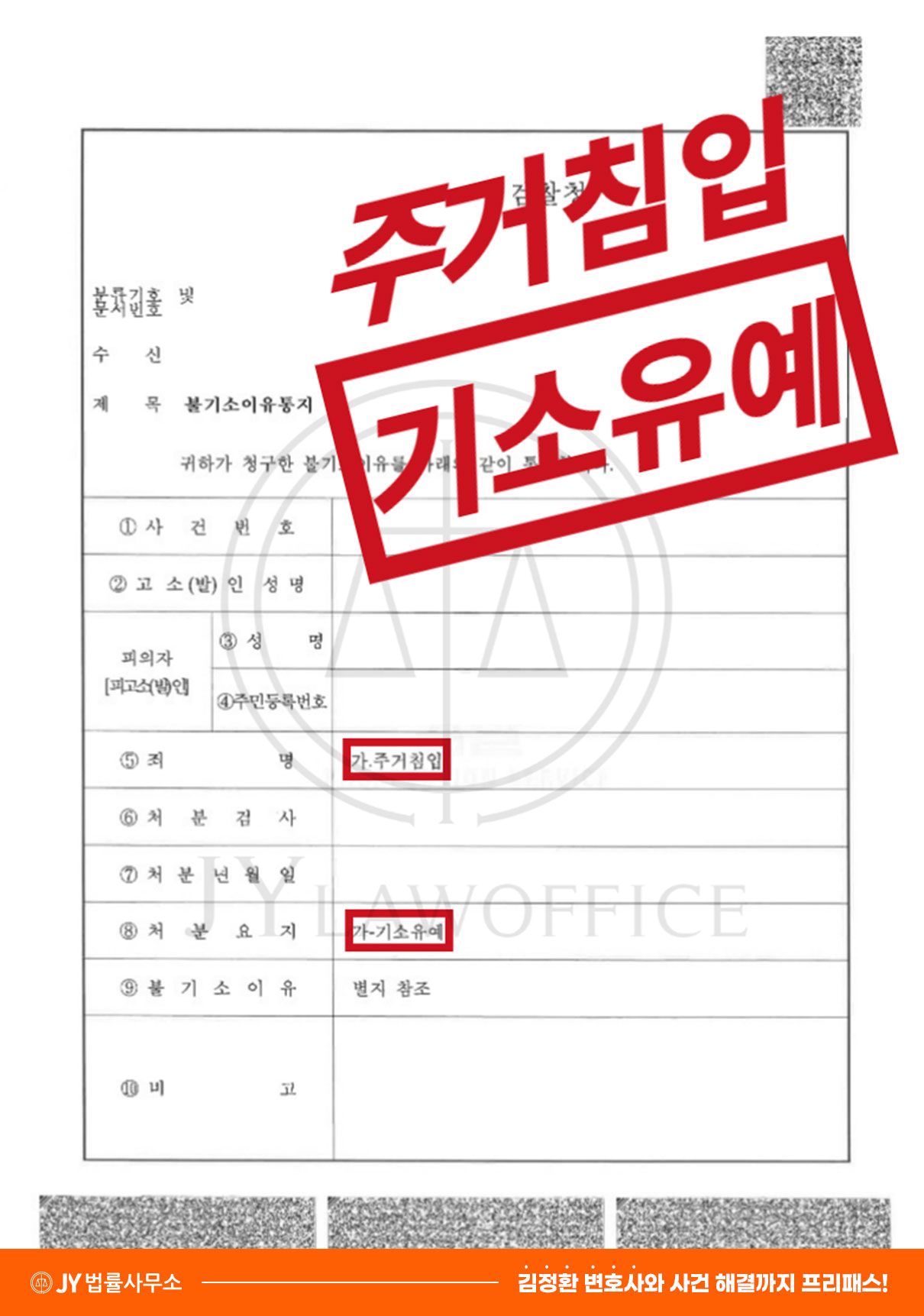 본 사건의 의뢰인은 피해자 주거지에 동의 없이 들어가 '주거침입'혐의가 적용되었습니다. 이에 의뢰인은 적절한 대응 방안을 수립하기 위해 JY법률사무소를 찾아 도움을 요청하셨습니다.