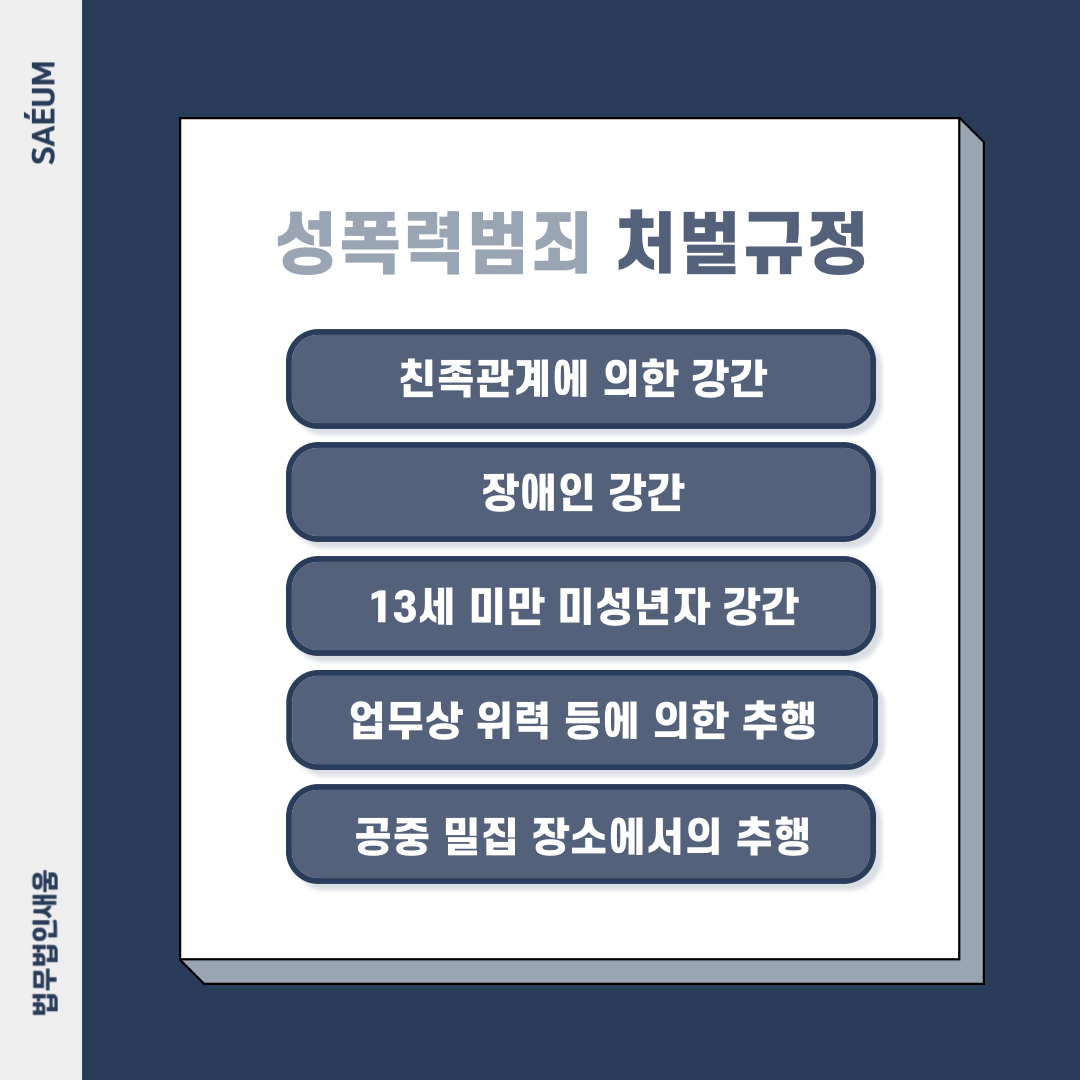 성폭력처벌법에 규정된 죄명은 다음과 같습니다.