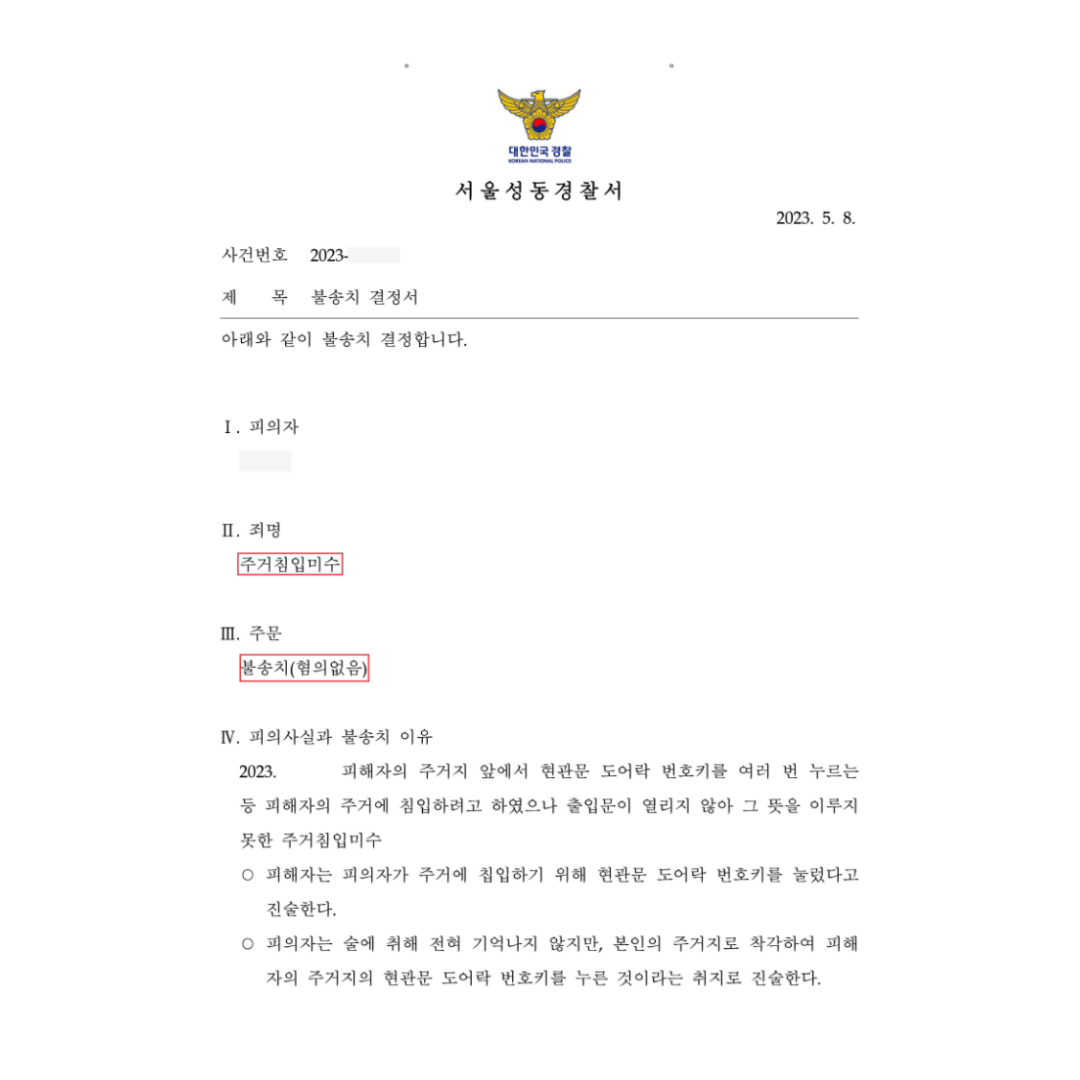 이에 의뢰인은 증거 불충분으로 인한 혐의 없음 처분을 받았습니다.