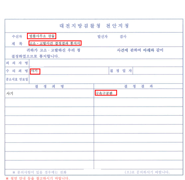 보다 적극적으로 증거자료를 확보하고, 그에 맞는 논리로 고소대리를 진행해드린 결과 사기죄 고소 구속구공판 기소를 이끌어낼 수 있었습니다.