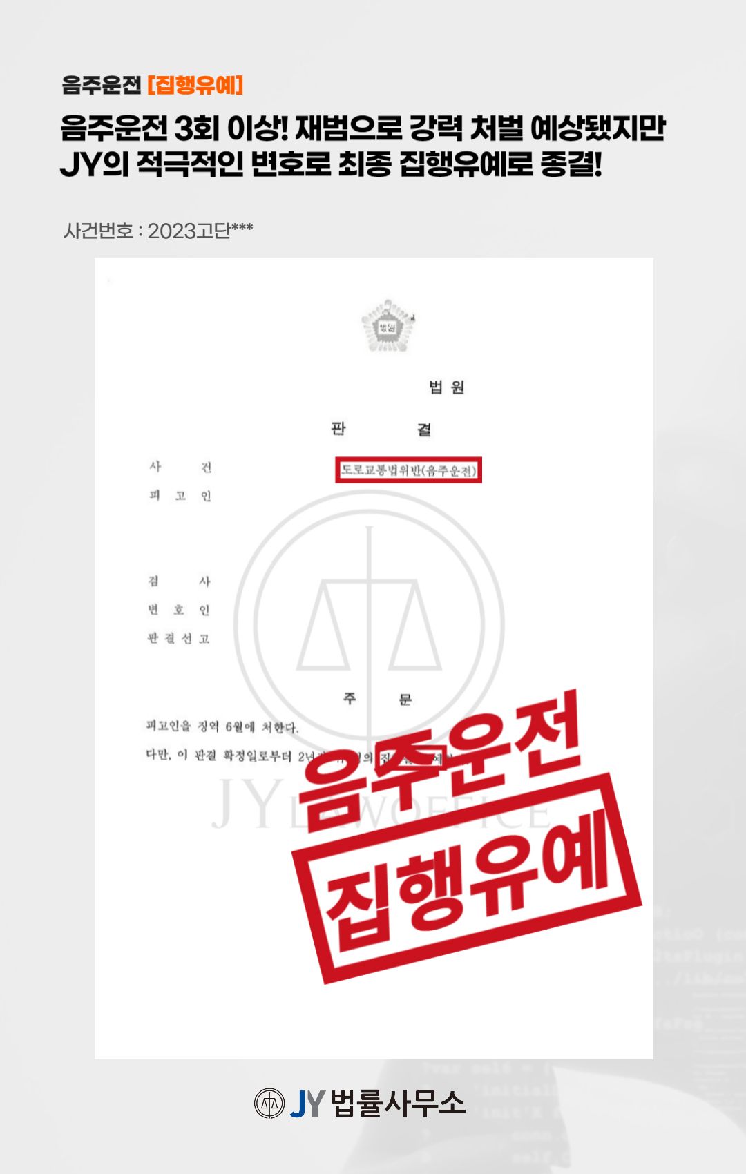 이와 같은 변호인의 조력에 따라, 의뢰인은 집행유예의 판결을 받고 사건을 마무리할 수 있었습니다.