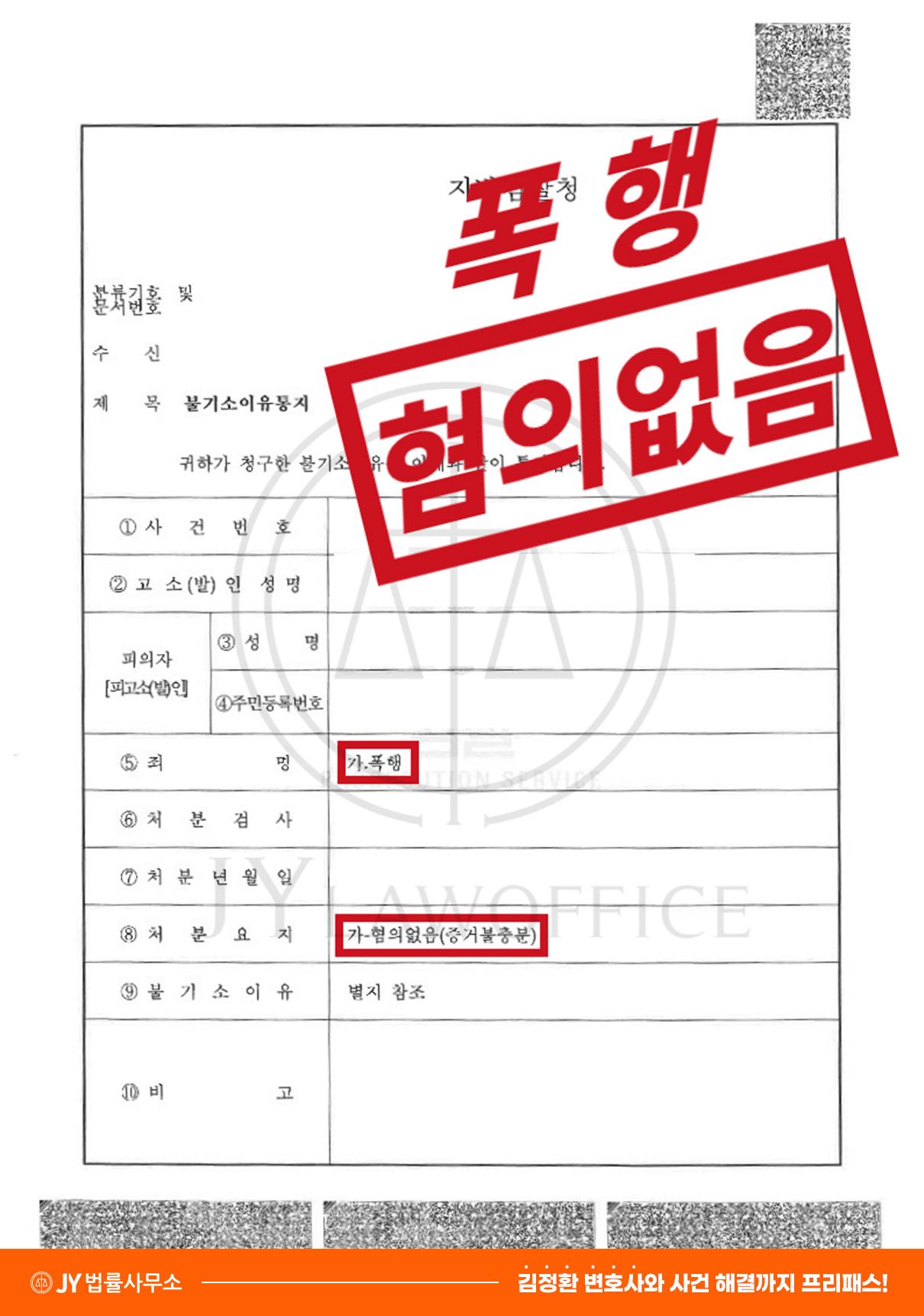 이와 같은 변호인의 노력에 따라, 의뢰인은 혐의없음(증거불충분) 처분을 받고 무사히 사건을 종결시킬 수 있었습니다.