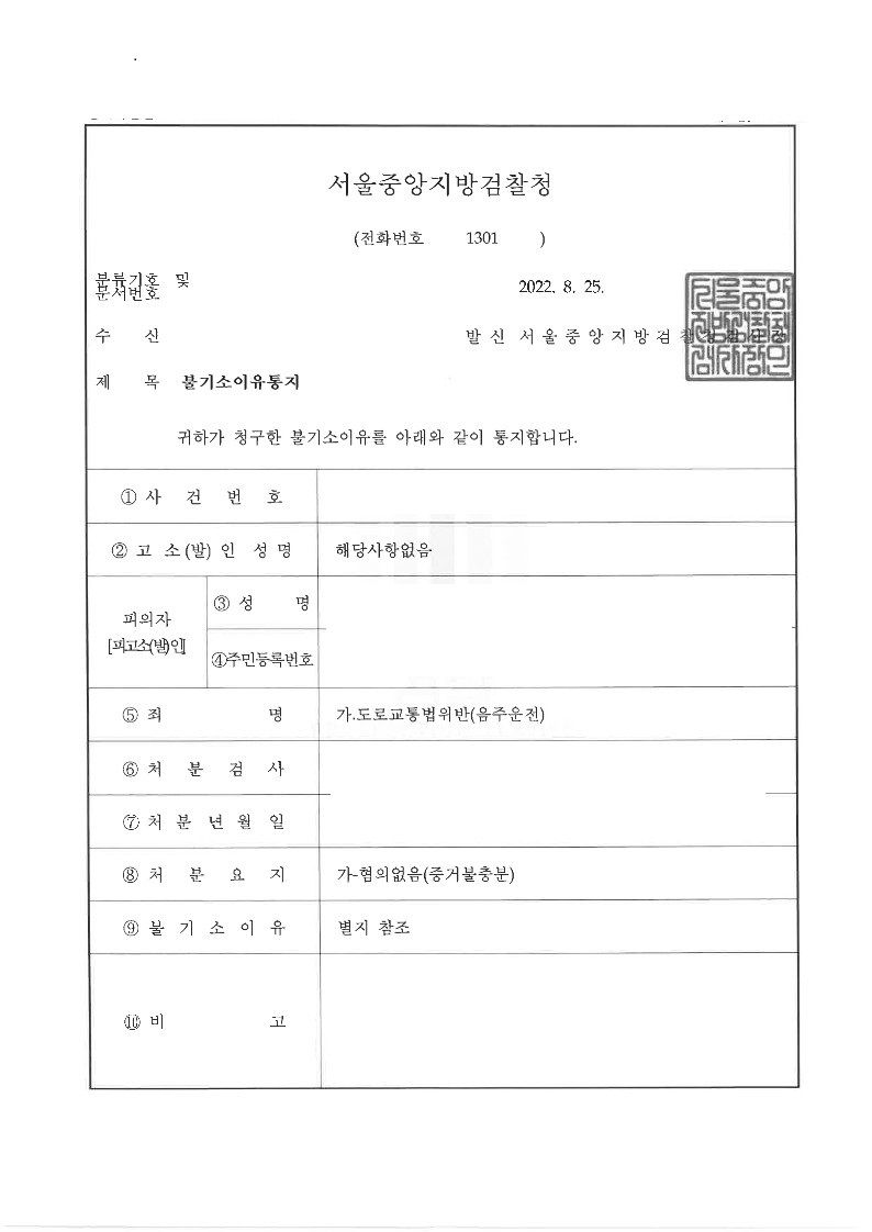 2. 의뢰인(피의자)과 상담과정에서 음주 전과가 여러 차례 있어 공판단계에서는 부인한다면 실형 가능성이 있다고 안내하면서 , 수사단계에서 위드마크 공식을 적용하여 운전 당시 음주측정수치가 0.03%이하였을 가능성을 주장하고, 단속 당시 경찰관과의 대화 내용 등을 중점적으로 무혐의를 주장하자고 설명하였고, 경찰 조사에 출석하여 음주 단속 전 음주를 종료한 시각, 운전을 한 시각 등을 상세하게 진술하였습니다. 그리고 조사 이후, 위드마크 공식을 적용한 의견서를 작성하여 제출한 결과, 담당 검사는 의뢰인과 변호인의 주장대로 당시 의뢰인이 혈중알코올농도 0.03%이상의 술에 취한 상태로 운전하였다고 볼 증거가 충분하지 않다고 판단하여 의뢰인에 대하여 혐의없음(증거불충분) 처분을 받아 무혐의로 사건을 성공적으로 마무리 지을 수 있었습니다.