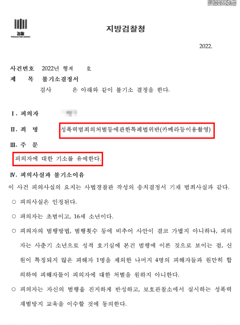 따라서 이제 16세에 불과한 의뢰인에게는 장래를 위해서 기소유예 처분이 필요한 상황이었습니다.