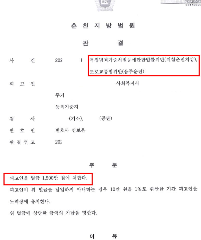 법원에서는 의뢰인의 반성과 재범 방지 노력을 믿어 주어 의뢰인에게 벌금형의 선처를 하였습니다.