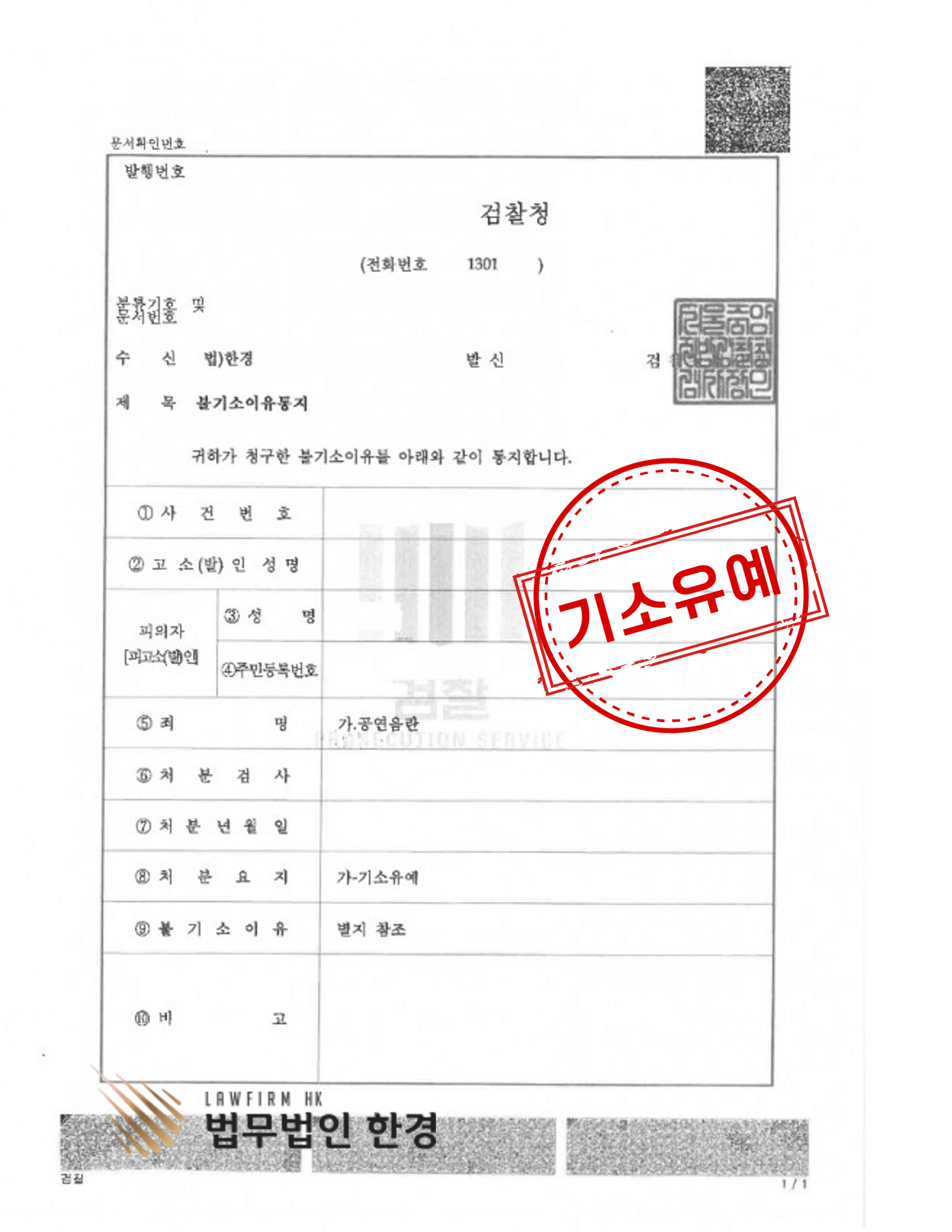 의뢰인 A씨는 입건 된 후 도움을 받고자 법무법인 한경을 찾아 대처 방안 등을 상담 받게 되었고, 의뢰인은 취업준비 등의 상황으로 기소유예 처분을 원하셨습니다. 법무법인 한경은 의뢰인에게 기소유예 가능성을 설명하였고, 의뢰인은 설명을 들은 뒤 법무법인 한경에 사건 의뢰를 하였습니다.